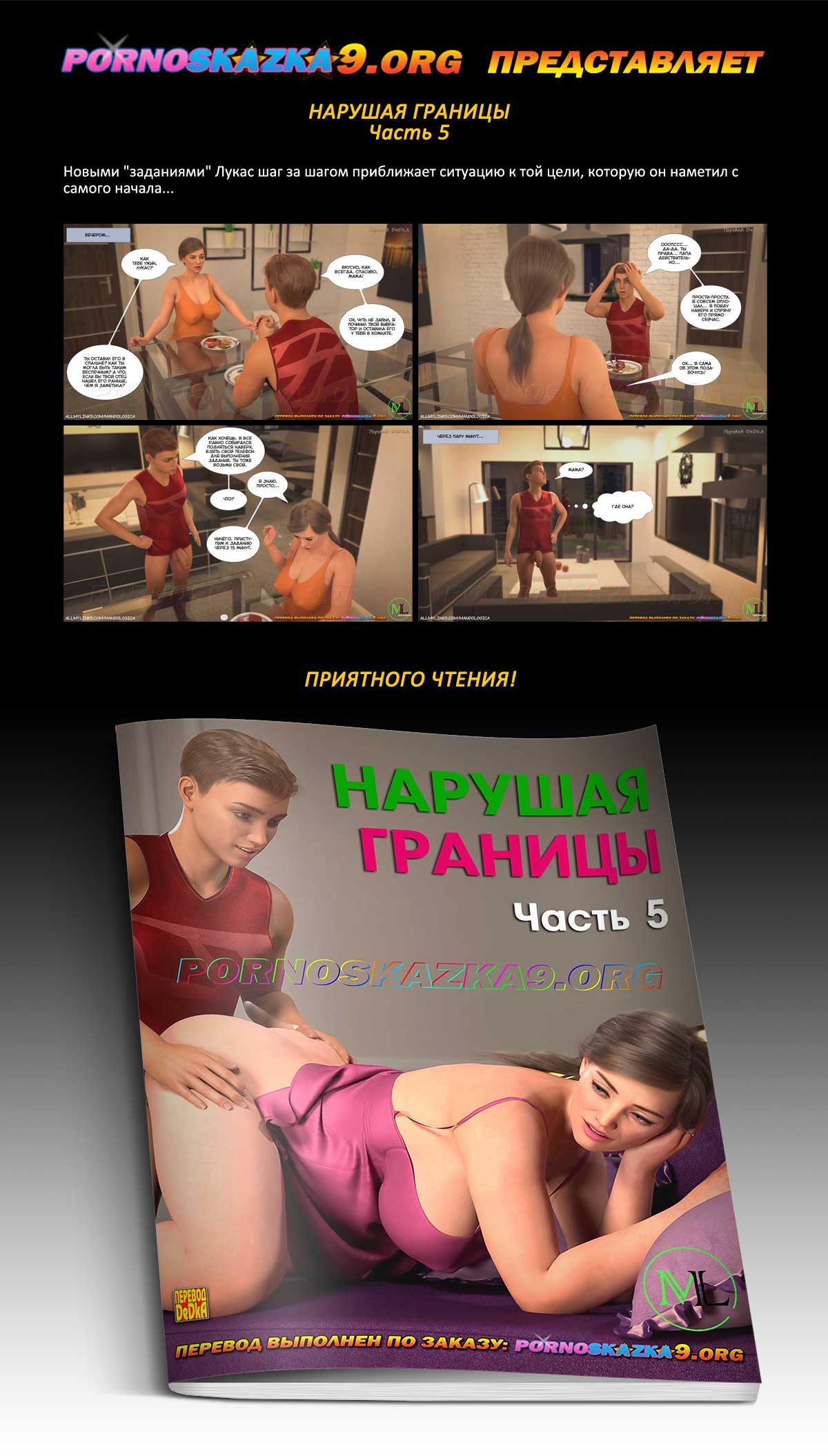 Порно комикс «Нарушая границы. Часть 5.» Новыми «заданиями» Лукас шаг за шагом приближает ситуацию к той цели, которую он наметил с самого начала…
